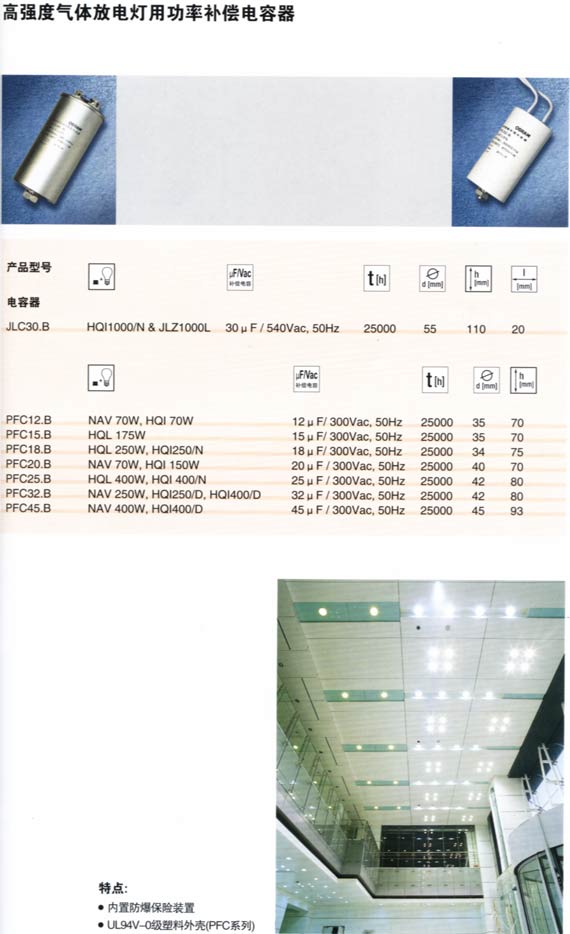 高強(qiáng)度氣體放電燈用功率補(bǔ)償電容器